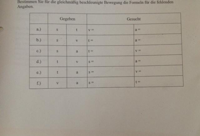 Bestimmen Sie Fur Die Gleichmassig Beschleunigte Bewegung Die Formeln Fur Die Fehlenden Angaben Nanolounge