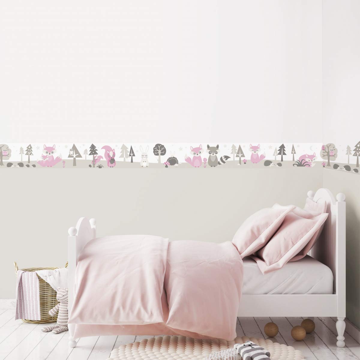 Wandtattoo Schlafzimmer Madchen Junge Wandbordure Kinderzimmer Babyzimmer Mit Niedlichen Waldtieren Anna Wand Bordure Selbstklebend Little Wood Rosa Graubeige Wanddeko Baby Kinder