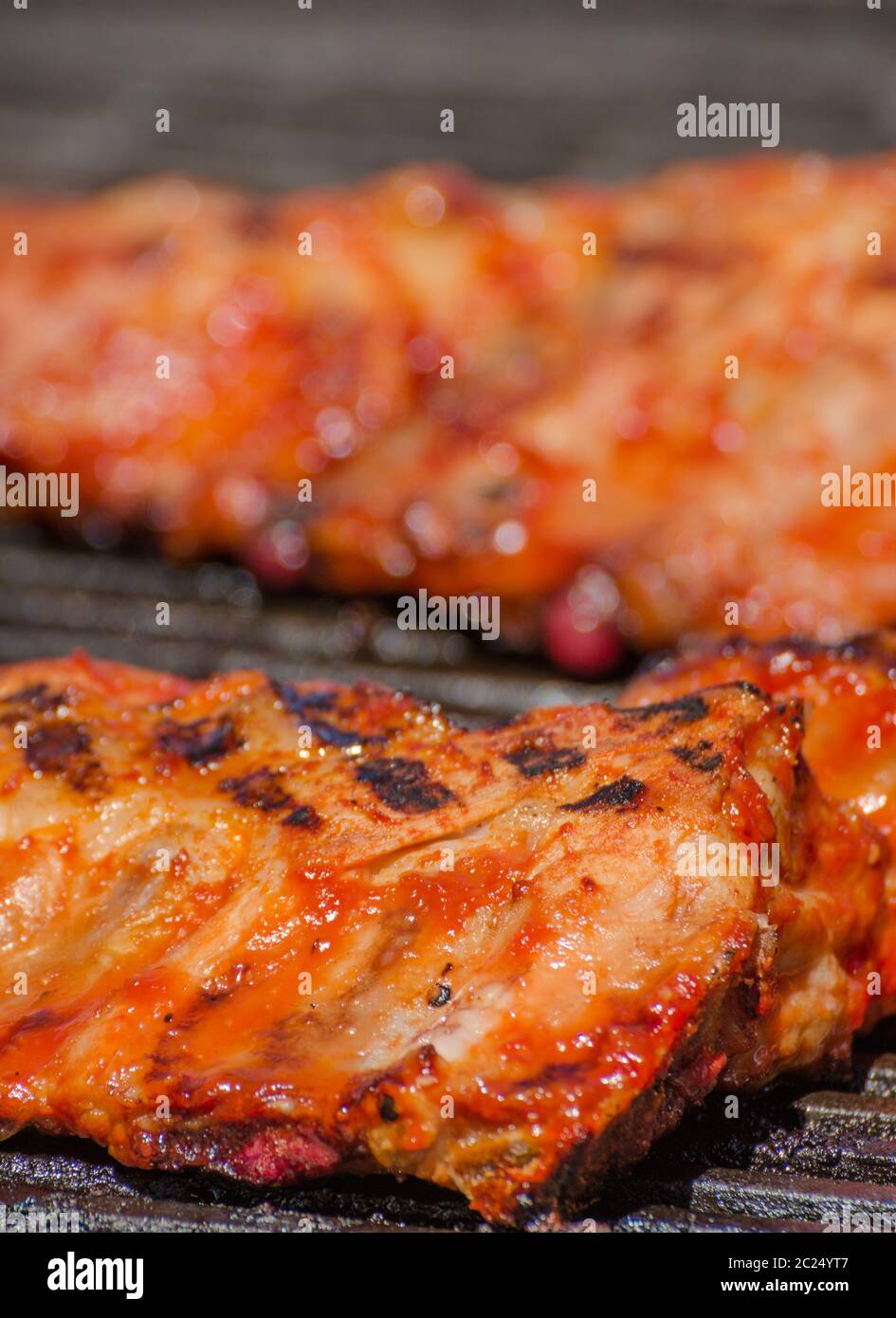 Spareribs On Grill With Hot Marinade Czech Beer And Bread Stock Photo Alamy