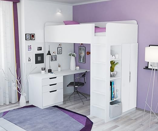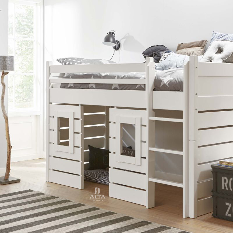 Alta Furniture Halbhohes Bett Mit Integriertem Schrank Und Schreibtisch In Weiss