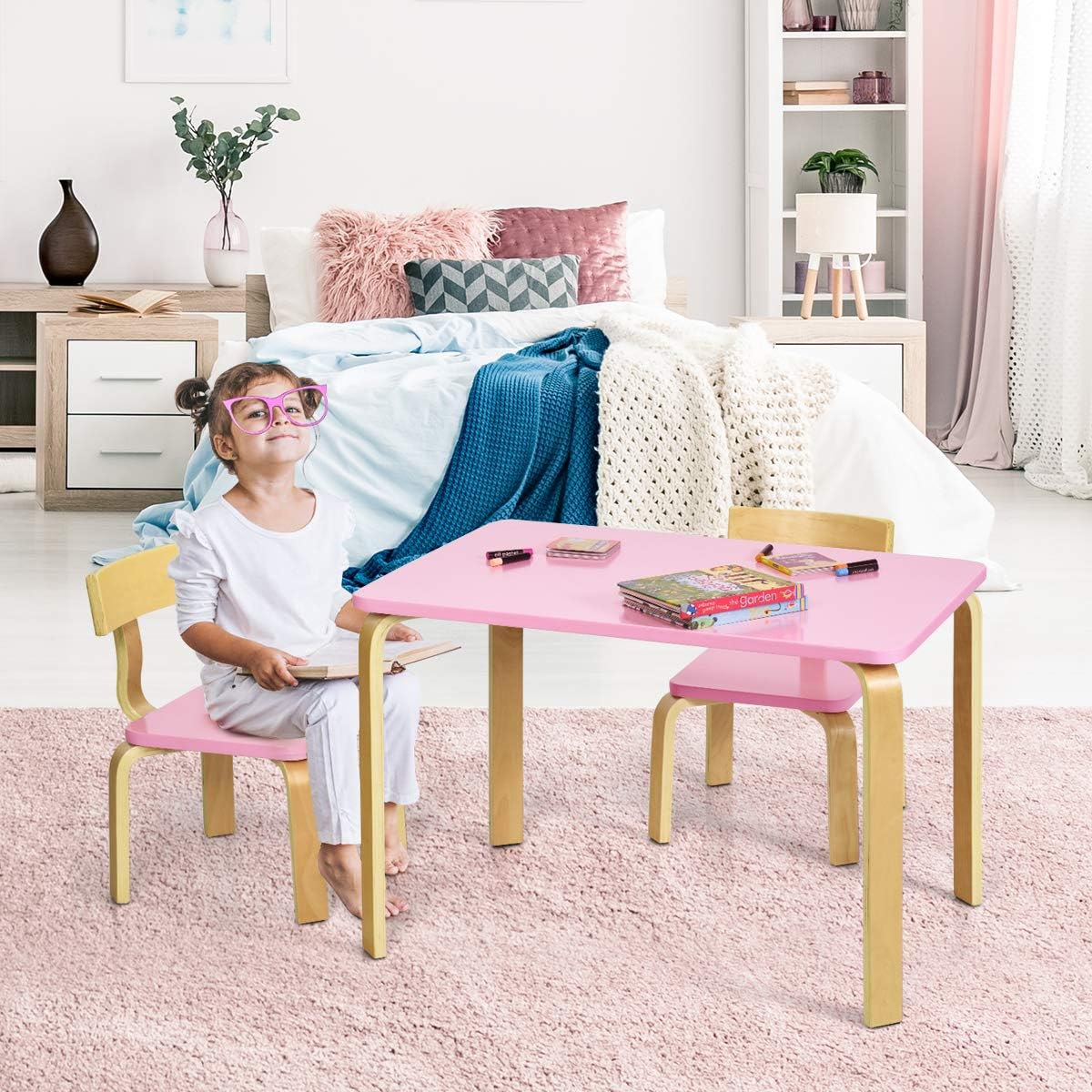 Mobel Kinder Tisch Und Stuhle Fur Zuhause Rosa Klassenzimmer Kindergarten Goplus Kindersitzgruppe Aus Holz Mit 1 Kindertisch Und 2 Stuhle Kindermobel Mit Abgerundeten Ecken Und Kanten Kuche Haushalt Wohnen Impas Es