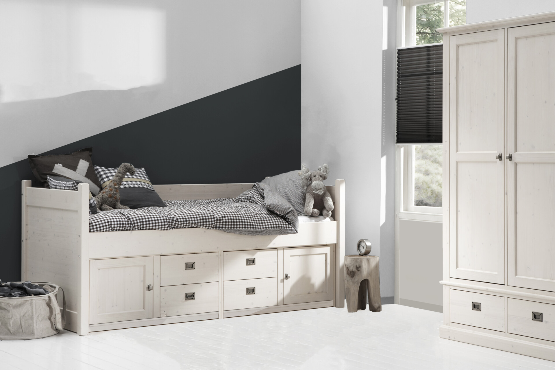 Alta Meubelen Kinderzimmer. Bett Schrank und Regal sind die Grundlage. Alle unsere Möbel fürs Kinderzimmer sind sorgfältig ausgewählt und entsprechen höchsten Standards.