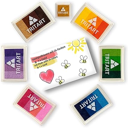 Tritart Fingerstempelfarbe I Fingerabdruck Stempelkissen 24 Farben Ungiftig 1 Gold I Kinder Stempelfarbe Abwaschbar I Stempelset Zum Gestalten Und Basteln I Stempel Fur Scrapbook Papier Leinwand Amazon De Kuche Haushalt